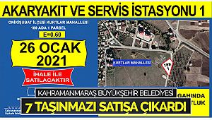 | Onikişubat Fatih | 9169/1 | 4.052,00 | 1.650,00 | 6.685.800,00 | 200.574,00 | Akaryakıt ve Servis İstasyonu E=0.60 | Kapalı teklif (35/a) | 26.01.2021 14:40 | 1/2’si peşin geriye kalanı 6 (ay) eşit taksit |