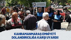 Kahramanmaraş İl Emniyet Müdürlüğünden yapılan açıklama da şu bilgilere yer verildi: Toplum Destekli Polislik Şube Müdürlüğümüzce 13.05.2022 tarihinde Sanayi Sitesi Camisinde ilimizde meydana gelen İletişim Yoluyla Dolandırıcılık, Narko Mobil, UYUMA ve Mala Karşı İşlenen Suçlarla ilgili vatandaşlarımız Cuma namazı çıkışı bilgilendirilmiştir. Çalışmalarda 430 broşür dağıtılmış yaklaşık 1000 vatandaşımız bilgilendirilmiştir.