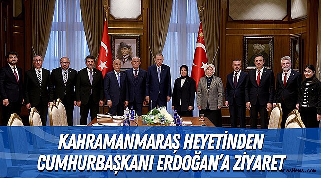 Cumhurbaşkanı ve AK Parti Genel Başkanı Recep Tayyip Erdoğan, Kahramanmaraş heyetini Cumhurbaşkanlığı Külliyesi’nde kabul etti. AK Parti Genel Başkan Yardımcıları Erkan Kandemir ve Yusuf Ziya Yılmaz’ın da hazır bulunduğu ziyarette Kahramanmaraş Büyükşehir Belediye Başkanı Hayrettin Güngör’ün yanı sıra; 66. Hükümet Tarım ve Orman Bakanı Prof. Dr. Vahit Kirişci, AK Parti Kahramanmaraş Milletvekilleri Ömer Oruç Bilal Debgici, Dr. Tuba Köksal, Mevlüt Kurt ve Prof. Dr. Mehmet Şahin, AK Parti İl Başkanı Fırat Görgel, İl Kadın Kolları Başkanı Asuman Yavuz ve İl Gençlik Kolları Başkanı Feyzullah Eren Aşçı da yer aldı. Heyet, deprem sonrası Kahramanmaraş’ta yürütülen ve planlanan projelere ilişkin Cumhurbaşkanı Erdoğan’a bilgiler aktardı.