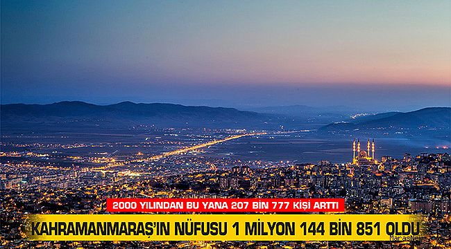 Kahramanmaraş’ta 2000 yılında 937 bin 74 olan nüfusu 2018’de 207 bin 777 kişi