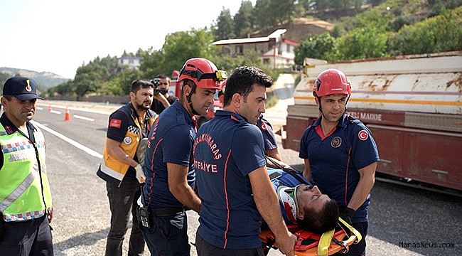 Kahramanmaraş Andırın yolu üzerinde Trafiğe kapalı alanda gerçekleştirilen tatbikatta, yol trafik güvenliği sistemini sürekli iyileştirmek, trafik kazalarından kaynaklanan ölüm ve ciddi yaralanmaları engellemek amacıyla birçok birim koordineli olarak yer aldı.