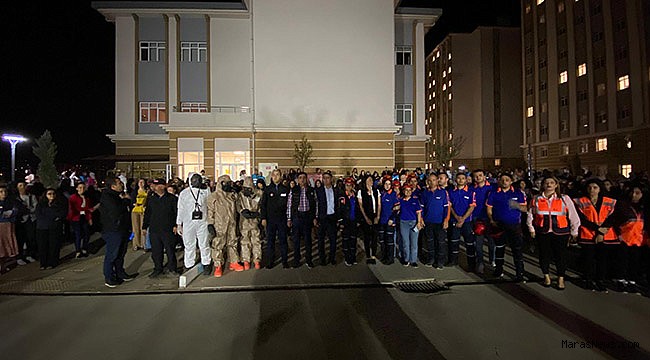 Kahramanmaraş Gençlik ve Spor İl Müdürü Cemil Boz, İl Afet ve Acil Durum Müdürü Aslan Mehmet Çoşkun ile birlikte toplam bin 405 öğrenci ve personelin katıldığı tatbikatta, ikaz alarmıyla birlikte tüm bina kısa sürede boşaltılarak, önceden belirlenen alanda bir araya gelindi.