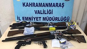 Kahramanmaraş İl Emniyet Müdürlüğü'ne bağlı ekiplerin, yoğun şekilde suç ve suçluyla mücadelesi kapsamında, havaya ateş eden, çoğunluğu sabıkalı silah taşıyan ve olaylarda silah kullanmaya yeltenen kişilere fırsat verilmedi. Ekiplerimiz huzur uygulamalarında ve bağ yollarında yapılan denetimlerde silahla meydana gelmesi muhtemel olayları engellemek için yoğun önlemler aldı. Silahla gerçekleşebilecek her türlü olaya anında müdahale eden ekiplerimiz, olay yerlerine seri şekilde intikal ederek şüphelileri silahlarla birlikte yakaladı. Mahalle ve parklara yönelik anlık süpürme şeklindeki huzur uygulamalarına ağırlık veren ekiplerimiz, yaya ve motorize ekipler ile silahla meydana gelmesi muhtemel olaylarla ilgili kent genelinde yoğun uygulamalar yaptı. Bunun yanı sıra suça meyilli kişiler ve araçlar takip edildi. Çok sayıda adrese de baskın yapıldı. Son bir hafta içinde yapılan çalışmalarda, sokak üzerinde silah taşırken 4 kişi suçüstü, ikametinde, aracında ve işyerinde silah ele geçirilen 13 kişi yakalandı. Toplamda; 2 adet ruhsatsız tabanca, 6 adet ruhsatsız tüfek, 4 adet kurusıkı tabanca, 1 adet havalı tabanca ve 1 adet pompalı tüfek olmak üzere toplam 14 adet silah ve çok sayıda mermi ele geçirildi. Park ve bahçelerde yapılan denetimlerde 5 şahıs üzerinden suçta kullanılabilecek bıçaklar ele geçirildi. Bu bıçaklara el konularak, şahıslara emre aykırı davranıştan işlem yapıldı. Silahla Yakalanan 13 şahsa da adli ve İdari İşlem yapıldı.