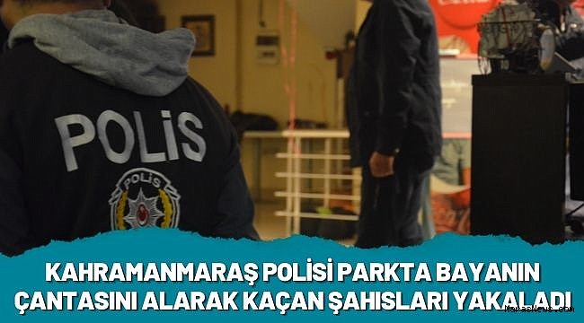 İl Emniyet Müdürlüğü Dulkadiroğlu İlçe Emniyet Müdürlüğü ekipleri, Dulkadiroğlu Mahallesi Hoca Ahmet Yesevi Lisesi yanında bulunan parkta çocuklarını oynatan Suriye Uyrukla F. E. MUSTAFA isimi bayanın piknik masası üzerinde bulunan çantasını alarak plakasız bir Motosiklet ile kaçan iki erkek şahsın yakalanmasına yönelik yapılan çalışmada kimlikleri tespit edilen B. Z. (19) ve R. A. (28) isimler şahıslar yakalanmış, yakalanan şüpheliler gözaltına alınmıştır. Emniyetteki işlemleri akabinde şahıslar adli makamlara sevk edilmiştir, çalınan çanta bayan şahsa teslim edilmiştir.