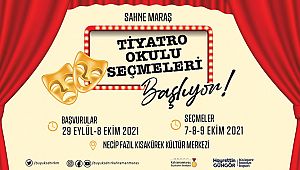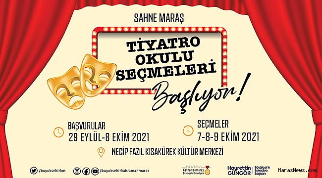 Kahramanmaraş Büyükşehir Belediyesi tarafından düzenlenen “Sahne Maraş Tiyatro Okulu” ve “Müşterek Tiyatro Topluluğu” yeni eğitim dönemine başlıyor. Ön başvuruları başlayan eğitimlere katılmak isteyen oyuncu adaylarının, Necip Fazıl Kısakürek Kültür Merkezi’nde yer alan başvuru noktasından form doldurmaları gerekiyor. Başvurular, 8 Ekim Cuma gününe kadar 08.00 ila 17.00 saatleri arasında yapılabilecek. Toplamda 8 hafta boyunca sürecek eğitimler ise 7-9 Ekim tarihlerinde gerçekleştirilecek seçmelerin ardından başlayacak. Uzman eğitmenler tarafından yaratıcı drama, duruş, diyafram - nefes gibi tiyatral eğitimlerin verileceği dersler ise yine Necip Fazıl Kısakürek Kültür Merkezi’nde verilecek.
