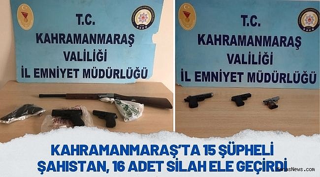 Kahramanmaraş İl Emniyet Müdürlüğü'ne bağlı ekiplerin, yoğun şekilde suç ve suçluyla mücadelesi kapsamında, havaya ateş eden, çoğunluğu sabıkalı silah taşıyan ve olaylarda silah kullanmaya yeltenen kişilere fırsat verilmedi.