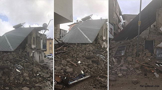 Müftüler Sokak üzerinde bulunan 2 katlı kerpiç evin yarısı büyük bir gürültüyle