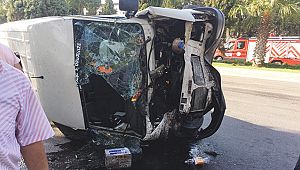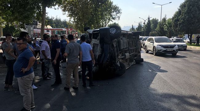 sürücü yaralanırken, yan yatan minibüste ise sürücü ile birlikte toplam 9