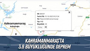 Afet ve Acil Durum Yönetimi Başkanlığı Deprem Dairesi Başkanlığı (AFAD) verilerine göre, saat 01.31’de Pazarcık ilçesinde 10.28 kilometre derinliğinde 3.8 büyüklüğünde deprem yaşandı.