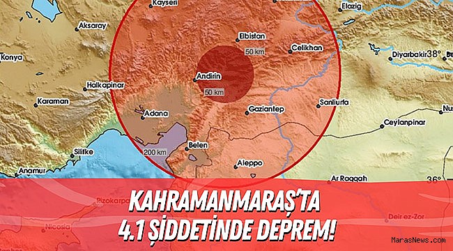 AFAD verilerine göre; Kahramanmaraş'ın Nurhak ilçesinde saat 22.20'de 4,1 büyüklüğünde deprem meydana geldi. Deprem yerin 6.97 kilometre derinliğinde meydana geldi.