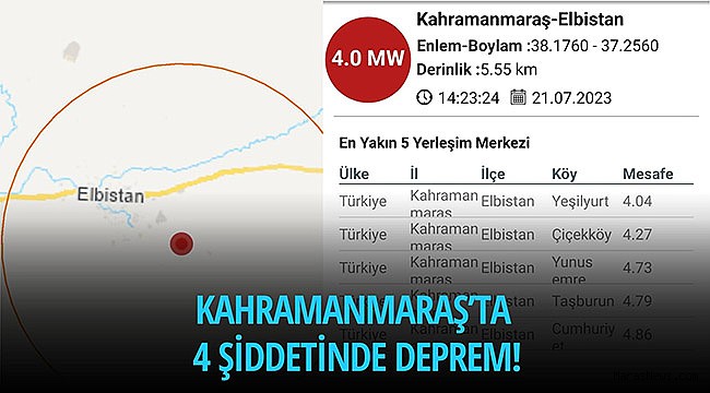 Kahramanmaraş başta olmak üzere komşu ilçelerden hissedilen depremde, herhangi bir yaralanmanın veya hasarın söz konusu olmadığı öğrenildi.