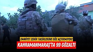 Kahramanmaraş Emniyet Müdürlüğü, 06 Ocak - 13 Ocak 2025 tarihleri arasında il genelinde Cumhuriyet Başsavcılığı koordinesinde operasyonel faaliyetler kapsamında, çeşitli suçlardan haklarında arama kararı bulunan 58 şahıs, uyuşturucu madde ticareti yapan 8 şahıs ve ikamet ile işyerlerinde hırsızlık olaylarına karışan 33 şahıs olmak üzere toplam 99 kişi yakalanarak adli makamlara sevk edilmiş, bunlardan 50'si tutuklandı.