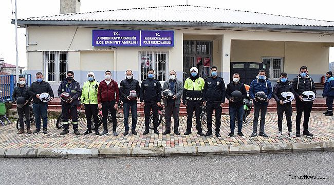Açıklama da; “Kahramanmaraş İl Emniyet Müdürlüğümüz Trafik Tescil ve Denetleme Şube Müdürlüğünce yürütülen “Bir Kask Bir Hayat Projesi” kapsamında vatandaşlarımıza karşı farkındalık oluşturulmasını sağlamak amacıyla gönderilen motosiklet kaskı ve önlüklerle ilgili Andırın İlçe Emniyet Amirliği Trafik Tescil ve Denetleme Büro Amirliği görevlilerince yapılan çalışmalarda;