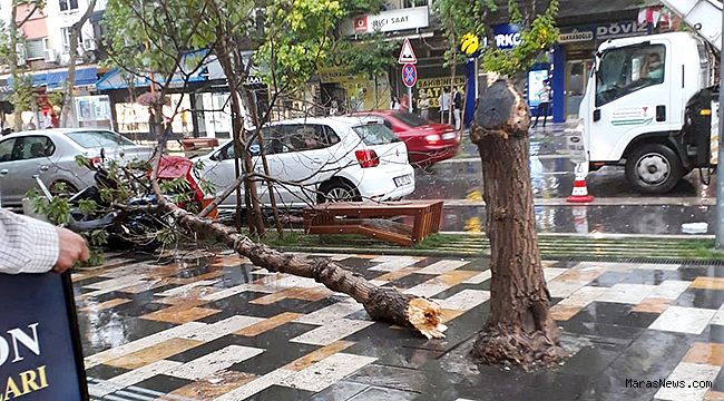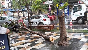 havanın etkili olması ile birlikte hava şartlarına dayanamayan ağaç devrildi.