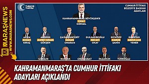 AK Parti Kahramanmaraş Büyükşehir Belediye Başkan Adayı Fırat Görgel’in liderliğinde Afşin Koray Kıraç, Andırın Ahmet Sinan Gökşen, Çağlayancerit Hasan Onaran, Dulkadiroğlu Necati Oktay, Ekinözü Harun Şahin, Elbistan Abdullah Yener, Göksun Hüseyin Coşkun Aydın, Nurhak İsmet Göksu, Onikişubat Hanifi Toptaş, Pazarcık Murat Ceyhan ile Türkoğlu Feyzettin Okumuş yerel seçimlerde başkanlık için yarışacak.