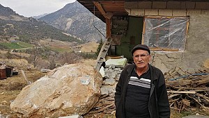 Tonlarca ağırlıktaki kaya kütlesi dağdan koparak, yerleşkedeki traktör römorkunu parçalayıp binanın yıkımına neden oldu.