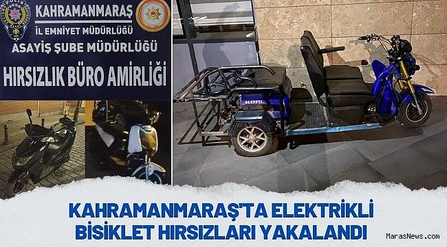 Kahramanmaraş İl Emniyet Müdürlüğü’nden yapılan açıklamada; “İlimiz Dulkadiroğlu ilçesinde bulunan Menderes Mahallesi ve Yahya Kemal mahallelerinde son bir hafta içerisinde özellikle gece saatlerinde müstakil ikamet önlerinde park halinde açıkta bırakılan elektrikli bisikletlerin çalınması üzerine Asayiş Şube Müdürlüğü Hırsızlık Büro Amirliğine bağlı ekiplerimiz tarafından derhal harekete geçildi. Bahse konu mahalle ara sokaklarında kamera çalışması yapılıp şüphelilerin izi sürülerek şüpheliler tespit edilip yakalandı.