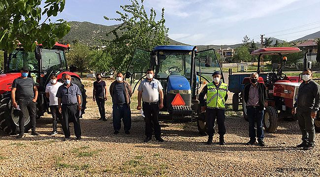 Traktör ve diğer tarım araçlarının karıştığı trafik kazalarının önlenmesi maksadıyla jandarma trafik ekipleri, geçtiğimiz 2020 yılında Kahramanmaraş ilçeleri arasında en çok traktör kazasının yaşandığı Pazarcık ilçesinde sürücüleri bilgilendirdi.