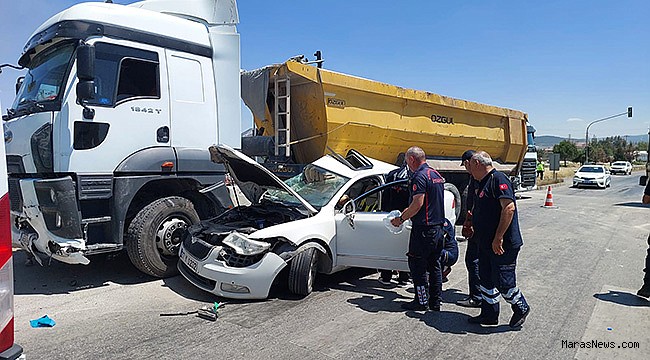 Edinilen bilgiye göre, Gaziantep-Kahramanmaraş istikametinde meydana gelen trafik kazasında, sürücü İ. S. (49) yönetimindeki 46AER845 plakalı çekici ile seyir halindeyken, ışıklı kavşakta kavşağa girmek isteyen sürücü S. S. (45 ) yönetimindeki 27Y1202 plakalı otomobile çarptı.