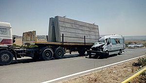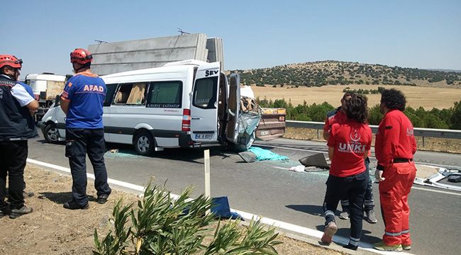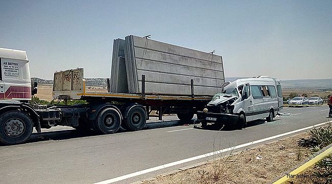 plakalı Tır'a arkadan çarptı. Servis minibüsünün Tır'a arkadan çarpması