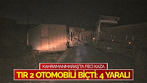 çarpmanın şiddetiyle tır devrildi, 2 otomobilde maddi hasar oluştu. Kaza