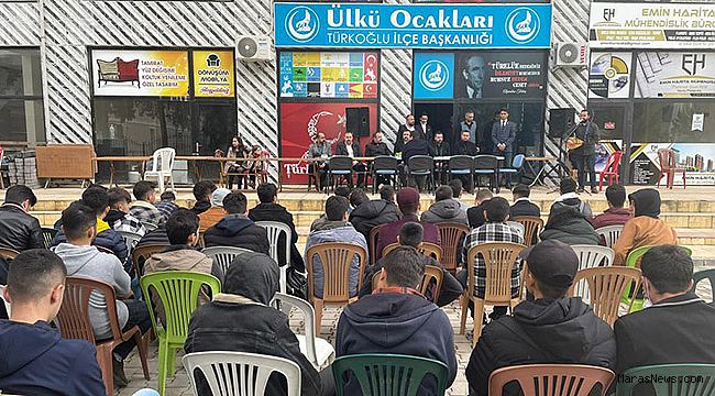 Türkoğlu Ülkü Ocakları Başkanı Mehmet Gökçe, etkinlik hakkında yaptığı açıklamada; “Türkoğlu Ülkü Ocakları Orta Öğretim Birimimiz tarafından organize edilen ‘Gençlik Ocakta Buluşuyor’ programı İl Başkanımız Dursun Nar’ın katılımı ve sanatçımız, il yöneticimiz Süleyman Güçlü’nün konseriyle gerçekleşmiştir. Katımlarından dolayı teşekkür ederim” dedi.