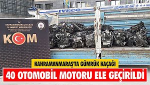 seri numaraları kazınmış gümrük kaçağı 40 otomobil motoru bulundu.