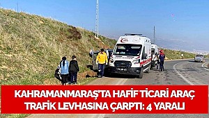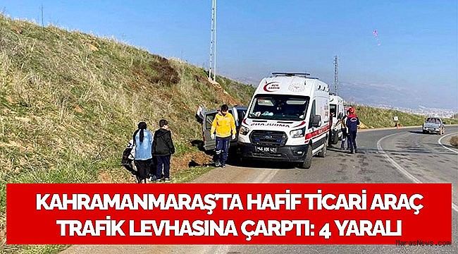 Edinilen bilgiye göre, Mustafa Ö. (73), idaresindeki 46 DS 350 plakalı hafif ticari araç ile Hacı Mustafa Mahallesinden Kurtlar Mahallesi istikametine seyir halindeyken virajda direksiyon hakimiyetini kaybederek yol kenarındaki trafik levhasına çarptı. Kazada sürücü ile birlikte yanında bulunan 4 kişi yaralandı. İhbar üzerine olay yerine gelen sağlık ekipleri tarafından Necip Fazıl Şehir Hastanesine kaldırılan yaralıların sağlık durumlarının iyi olduğu öğrenildi.