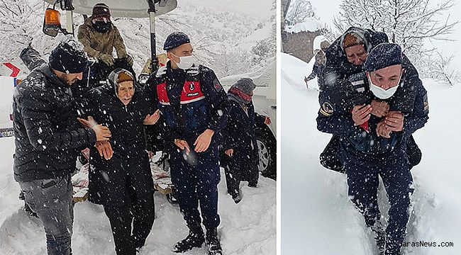 Türkoğlu ilçesine bağlı Dedeler Mahallesinde ikamet eden 94 yaşındaki yatalak hasta Mehmet Saat ve eşi olan Latife Saat’ın (74) toprak evlerinin çökme ihtimaline karşı harekete geçti. Yaşlı karıkocaya yaşadığı eve ulaşan jandarma ekipleri, ekip aracının karlı alana girememesi nedeniyle tahliye işlemini yaşlı çifti sırtlarında taşıyarak gerçekleştirdi. Yaşı çifti ekip aracına alan jandarma ekipleri, Mehmet Saat ve eşi olan Latife Saat’ı Şekeroba Mahallesinde ikamet eden torununa teslim ederek, bölgeden ayrıldı.