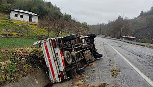 kontrolden çıkarak devrildi. Kazada kamyonette bulunan 6 kişi yaralandı.