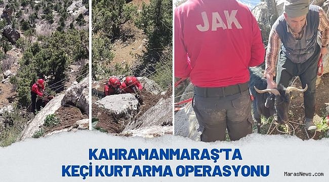Onikişubat İlçesine bağlı Engizek Mahallesi'nde hayvanlarını otlatan Y.S’nin keçilerinden biri kayalıklarda mahsur kaldı. Keçisini kurtarmaya çalışan Y.S, başaralı olamayınca durumu, jandarma ekiplerine bildirdi. Yapılan ihbar üzerine bölgeye gelen ekipler, bir süren çalışma sonucu keçiyi bulunduğu yerden kurtararak sahibine teslim etti. Keçisine kavuşan hayvan sahibi, kurtarma ekibine teşekkür etti.
