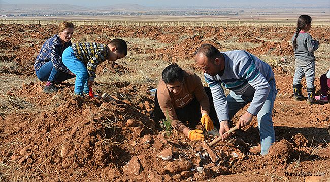 bölgeye giden mahalleli Kahramanmaraş Orman Bölge Müdürlüğünden temin edilen fidanları