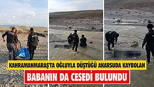 Kahramanmaraş'ın Pazarcık ilçesinde 26 Şubat'ta balık tutmak için kıyısına gittikleri akarsuya düşerek kaybolan baba ile oğlu için arama çalışması başlatılmış, Başar Şireki'nin cesedine dün ulaşılmıştı. (AA)