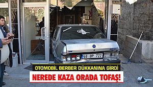 çıkan otomobil, berber dükkanına girdi.