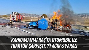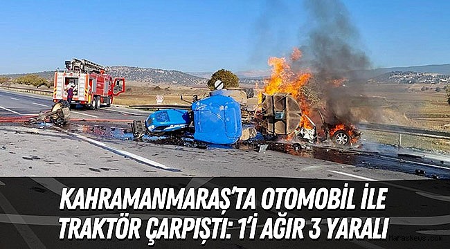 Edinilen bilgiye göre, Kahramanmaraş-Gaziantep karayolu üzerinde Çiğili mevkinde traktör ile ile otomobil, bilinmeyen nedenle çarpıştı. Kazada çarpmanın etkisiyle traktör devrildikten, otomobilde yangın çıktı. Diğer sürücülerin ihbarı üzerine bölgeye gelen sağlık ekipleri tarafından kentteki çeşitli hastanelere kaldırılan yaralılardan birinin sağlık durumunun ciddiyetini koruduğu öğrenildi.