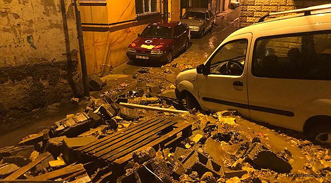 Kahramanmaraş’ta akşam saatlerinde başlayan sağanak yağış, ilerleyen saatlerde yerini şiddetli rüzgar ve şimşeklere bıraktı. 10 dakika süren kuvvetli yağış sonrası kent merkezinde bazı bölgelerde su baskınları yaşanırken, Dumlupınar İlköğretim Okulu’nun istinat duvarı çöktü. Şehrin giriş ve çıkışlarında ise, sürücüler su göllenmeleri nedeniyle trafikte ilerlemek te güçlük çekti.