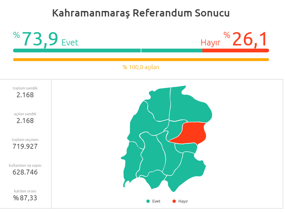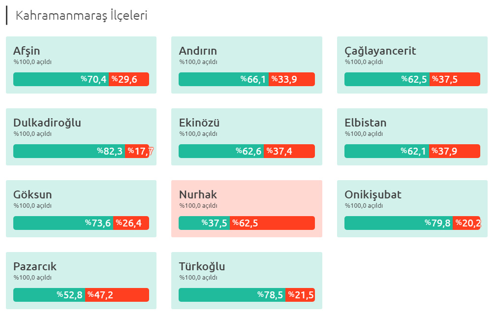 Kahramanmaraş'ta sandıkların tamamı açıldı.