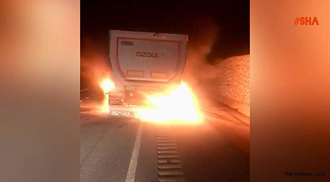 Edinilen bilgiye göre; Kahramanmaraş Kayseri yolu üzerinde seyir halinde olan tırın lastiklerinde bilinmeyen bir nedenle yangın çıktı. Alevleri fark eden sürücü tırı güvenli bir alana çekerek itfaiye ekiplerine bilgi verdi. İtfaiye ekiplerinin zamanında müdahalesiyle yangın tırın tamamına sıçramadan söndürüldü. Maddi hasarın oluştuğu yangının çıkış nedeni yapılacak incelemenin ardından netlik kazanacak.