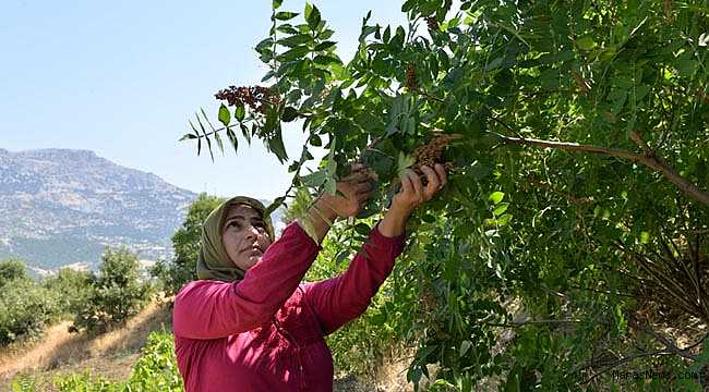 Kahramanmaraş’ ta dağlarda, bağlarda, bahçelerde ve doğal ortamlarda yetişen sumak bitkisinden elde edilen sumak ekşisi toplanmaya başlandı.