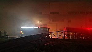 Edinilen bilgiye göre, Kahramanmaraş-Kayseri yolu 5. kilometresinde tekstil fabrikasında bilinmeyen bir nedenle yangın çıktı. Yangın ihbarı üzerine bölgeye çok sayıda itfaiye ekibi sevk edildi. Fabrikanın depo bölümünde çıkan yangın, kontrol altına alınmaya çalışılıyor.