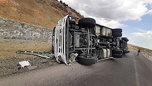 yan yatarak ancak durabildi. Kazada tır sürücüsü hafif yaralandı. Kaza