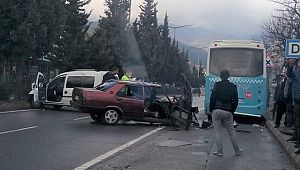 ticari araca, sonra halk otobüsüne çarparak ancak durabildi. Kazada otomobilde