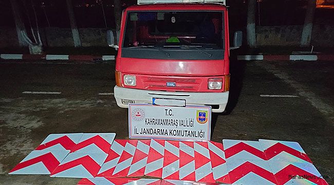 Edinilen bilgiye göre, İlçede alınan bir duyumu değerlendiren jandarma ekipleri, bir kamyonette yaptığı aramada 20 adet trafik levhası buldu. Yapılan araştırmada karayollarına ait trafik levhalarının söküldüğü tespit edildi. Jandarma ekiplerince trafik levhalarına el konurken, gözaltına alınan S.Y (34) ile H.B (32) sevk edildiği adli mercilerce serbest bırakıldı.