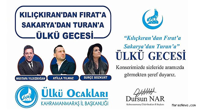 Ülkü Ocakları Kahramanmaraş İl Başkanlığı, 17 Eylül Cumartesi günü Milli İrade Meydanı’nda gerçekleştirilecek olan ‘Kılıçkıran’dan Fırat’a Sakarya’dan Turan’a Ülkü Gecesi’ programında bütün vatandaşları meydana davet etti.