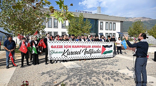 Kahramanmaraş Sütçü İmam Üniversitesi (KSÜ) öğrencileri, İsrail'in Filistin'e yönelik saldırılarını kınamak amacıyla “Soykırımın Birinci Yılında Yiğit Gazze’ye Selam Olsun Basın Açıklaması ve Dua Programı” düzenledi. Öğrenciler, programda dayanışma mesajları vererek Gazze’ye destek oldular. Öğrenciler adına açıklama yapan KSÜ İnsan Hakları ve Özgür Gençlik Topluluğu Başkanı Sümeyye Nur Yüce, İsrail'in saldırılarına tepki gösterdi.