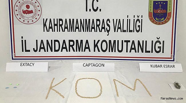 yapılan aramada 201 adet Captagon, 4 adet Extacy hap ile 5 gram Kubar Esrar