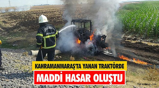 yangın söndürülürken, traktör kullanılamaz hale geldi. (AA)