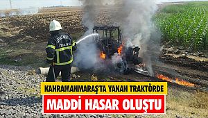 46 TB 308 plakalı traktör, tarlada çalışırken bilinmeyen nedenle yanmaya