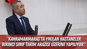 TBMM Genel Kurulu’nda söz alan DEVA Partisi Kahramanmaraş Milletvekili İrfan Karatutlu, Kahramanmaraş’ta 6 Şubat depremlerinde yıkılan hastanelerin, uygun alanlar varken birinci sınıf tarim arazisi üzerine yapılmasına tepki gösterdi.