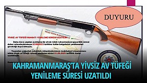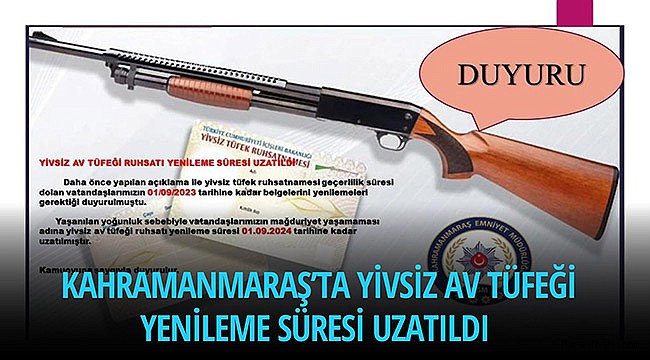 Yapılan açıklamada, “Daha önce yapılan açıklama ile yivsiz tüfek ruhsatnamesi geçerlilik süresi dolan vatandaşlarımızın 01/09/2023 tarihine kadar belgelerini yenilemeleri gerektiği duyurulmuştu. Yaşanılan yoğunluk sebebiyle vatandaşlarımızın mağduriyet yaşamaması adına yivsiz av tüfeği ruhsatı yenileme süresi 01.09.2024 tarihine kadar uzatılmıştır” denildi.